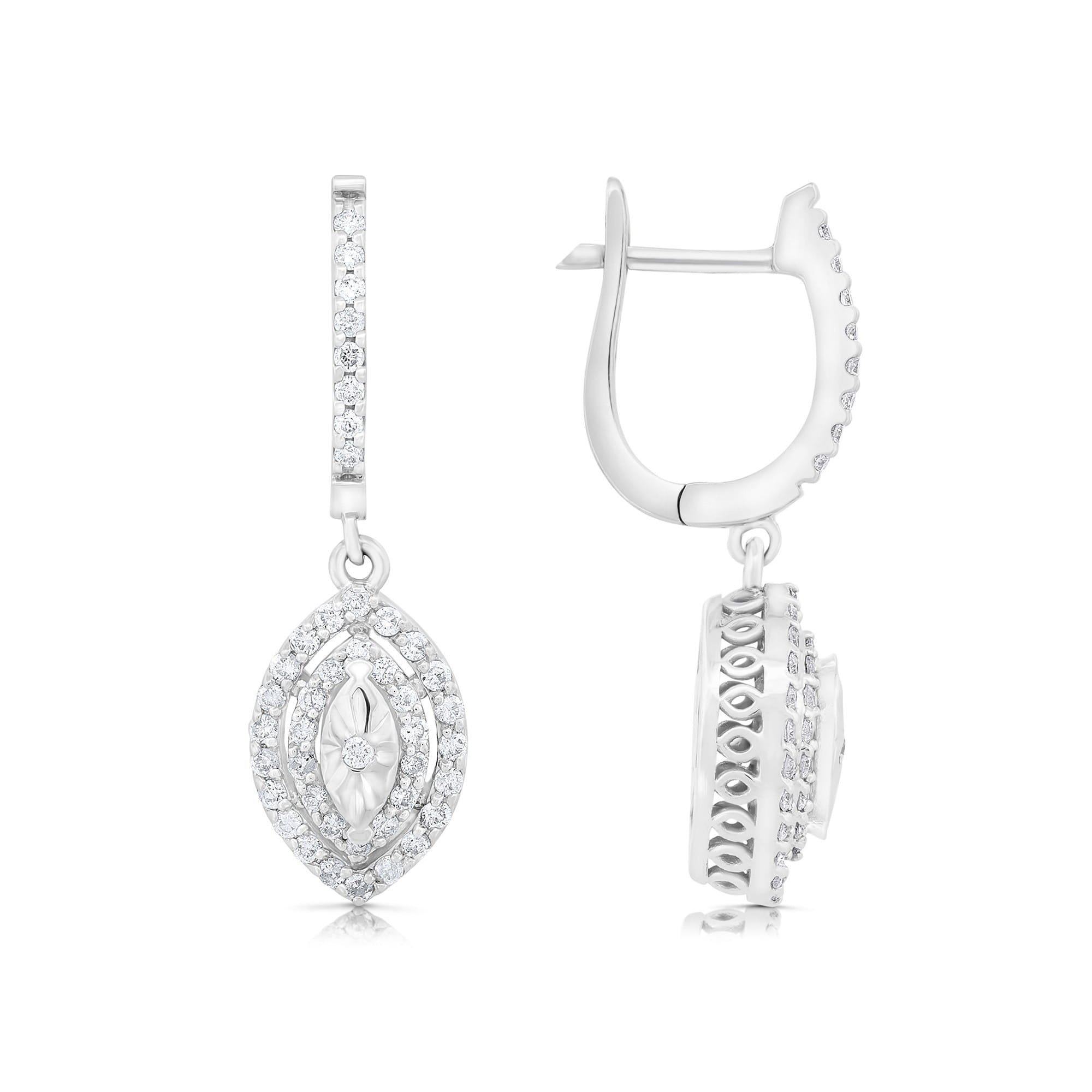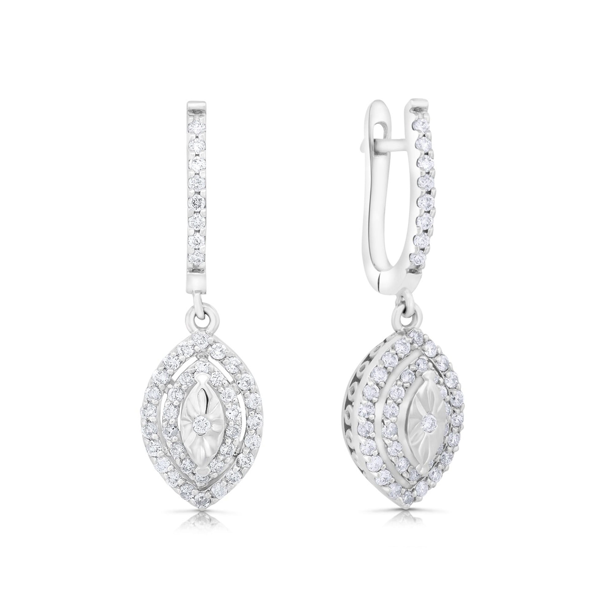 Kolczyki z diamentami to luksusowy prezent podarowany na wyjątkową okazję. 94 diamenty, białe złoto, niebanalny kształt markizy to kompozycja idealna dla Kobiet, które nie pozostaną niezauważone i cenią sobie ponadczasową elegancję.