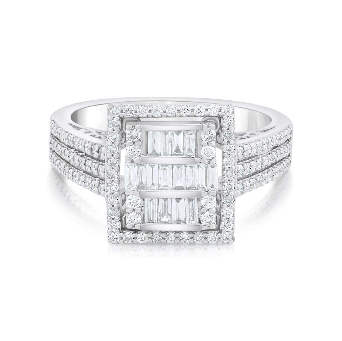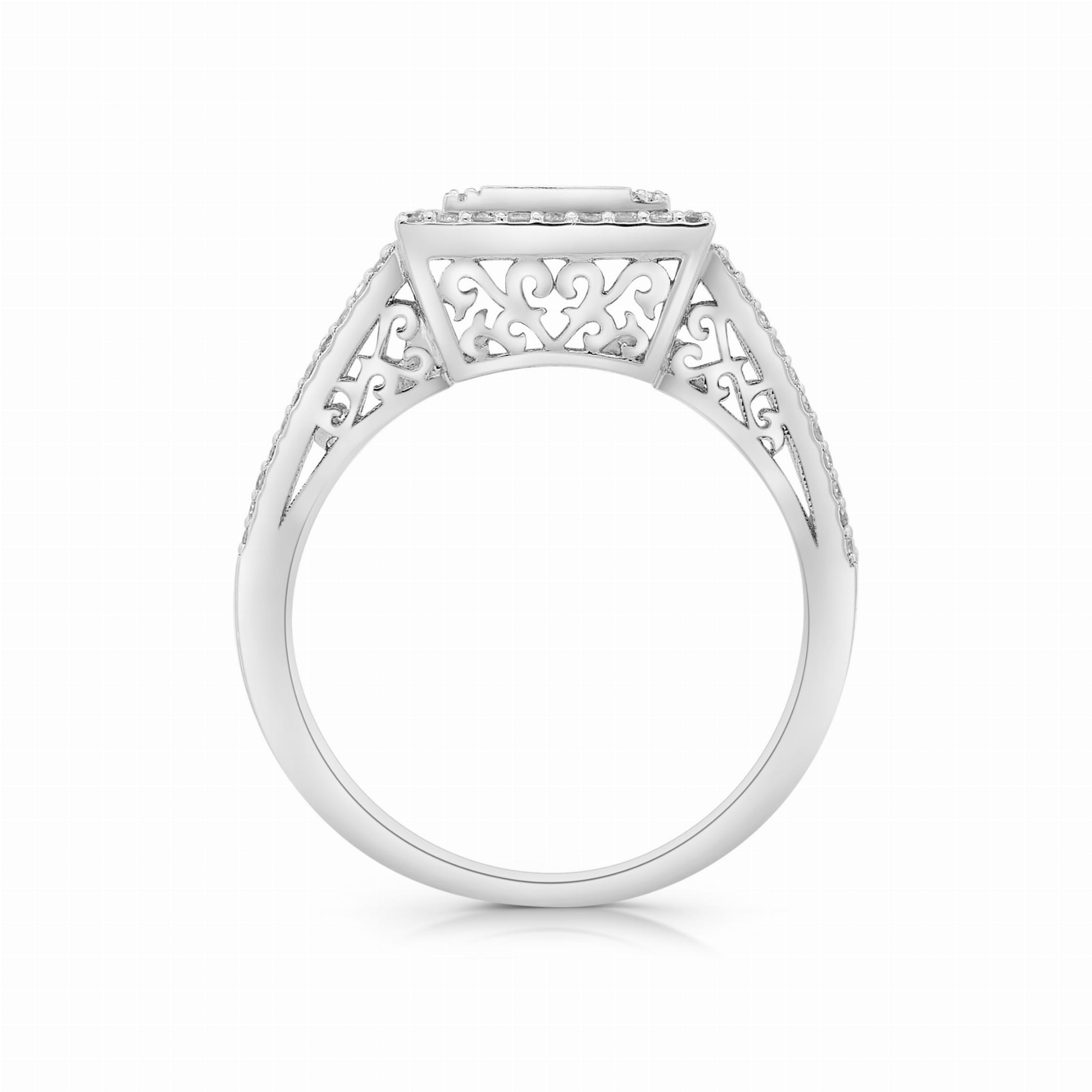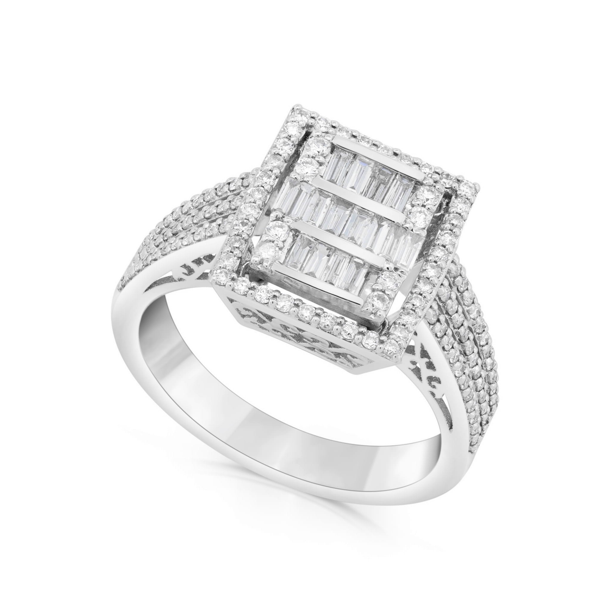 Bądź gotowa na zachwyt i zaznacz swoją obecność z naszym luksusowym pierścieniem z diamentami z białego złota.