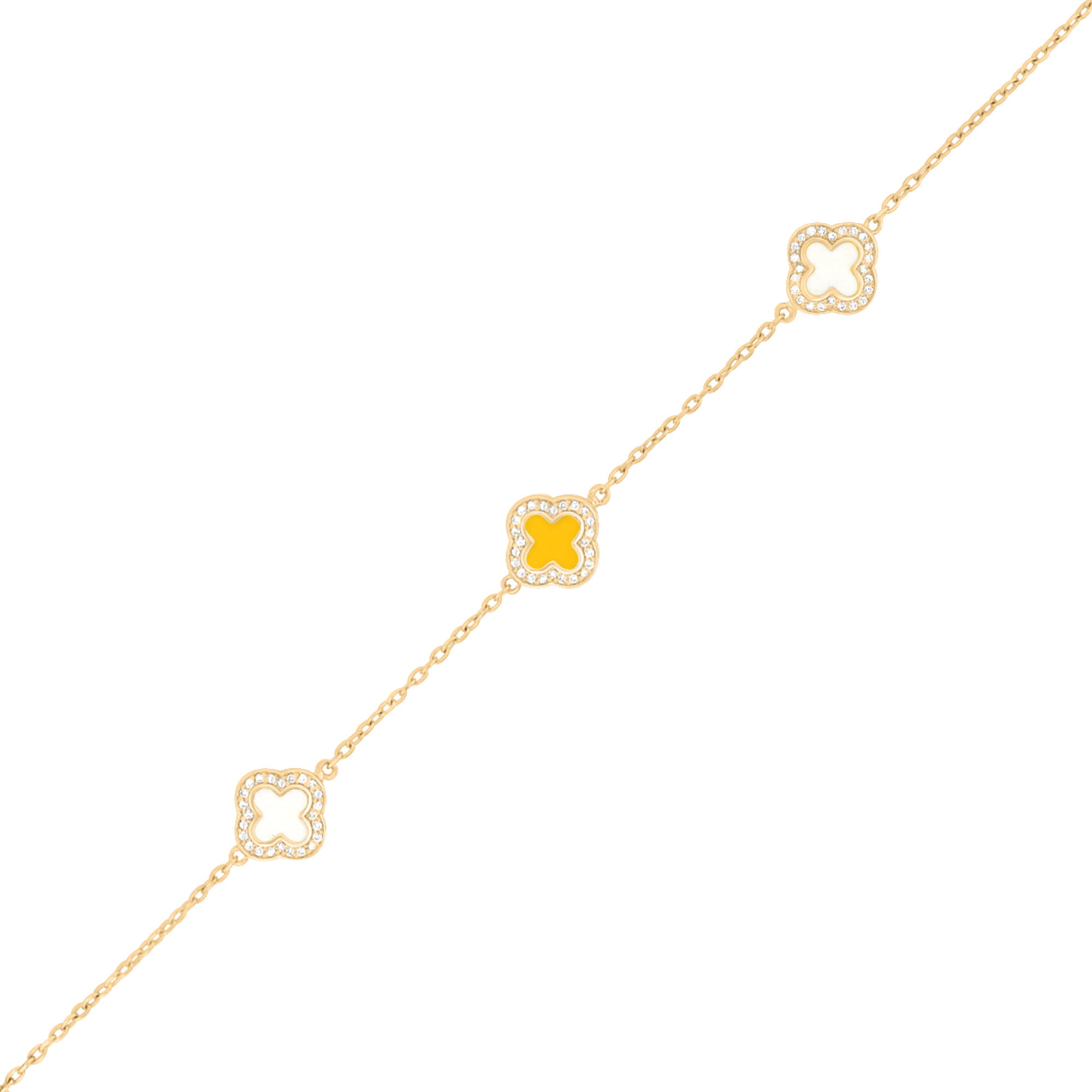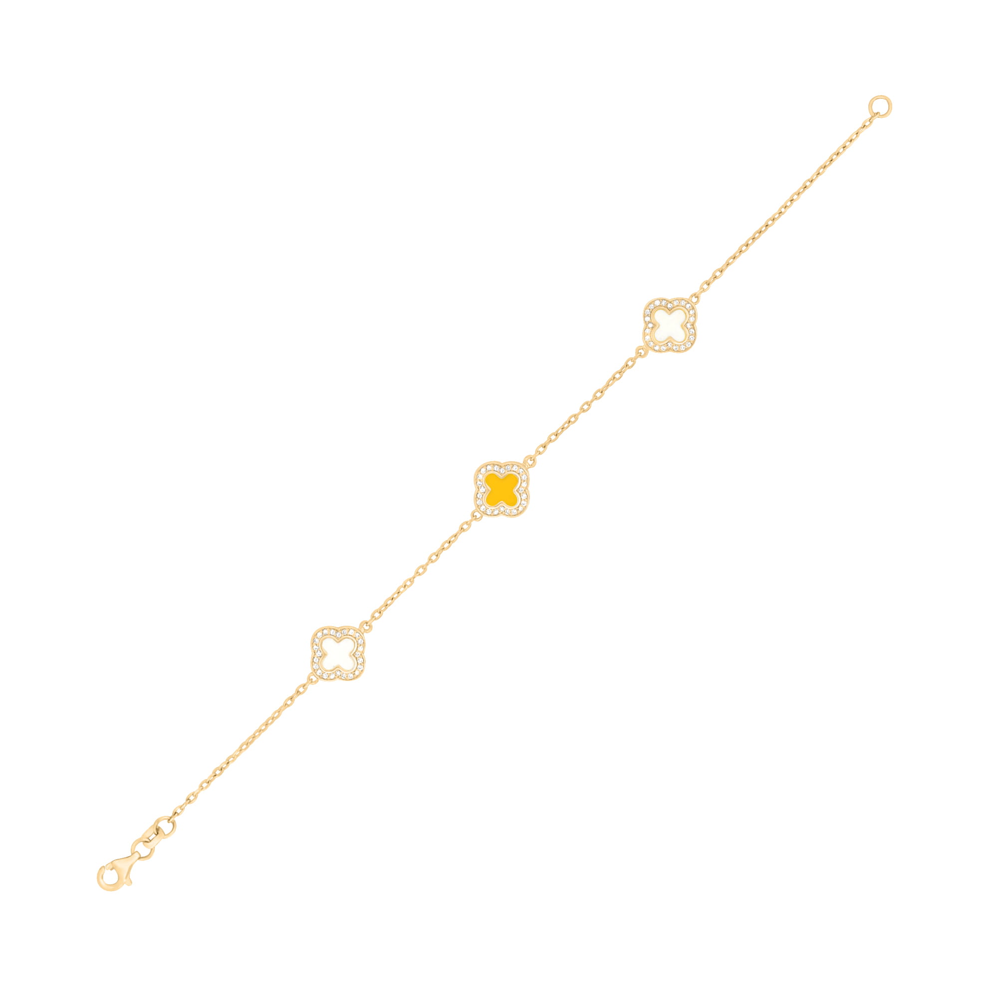 Bransoletka żółta koniczyna z diamentami z żółtego złota. Kolekcja Lucky.