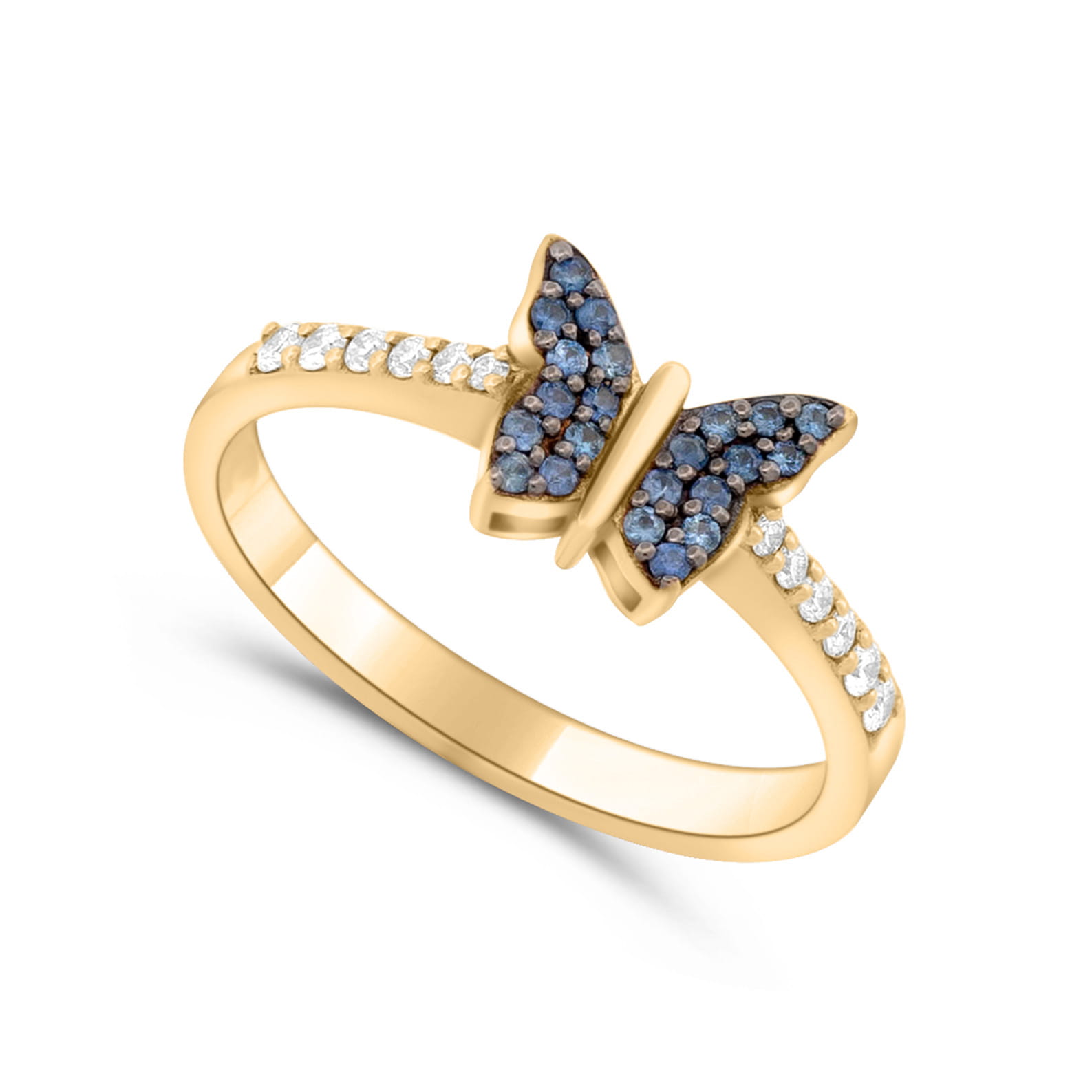 Pierścionek motyl z szafirami i diamentami z żółtego złota Lucky